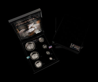 each comprising 10 oz., 5 oz., 2 oz., 1 oz., 1/2 oz., 1/4 oz and 1/10 oz. examples in a display box with papers and outer packaging.