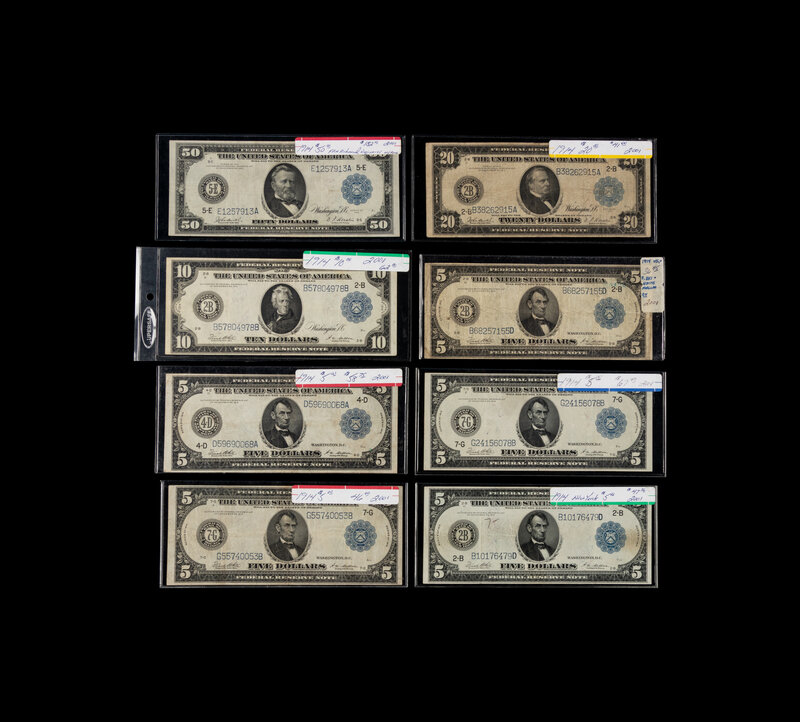 A Collection of Eight Series 1914 Federal Reserve Notes