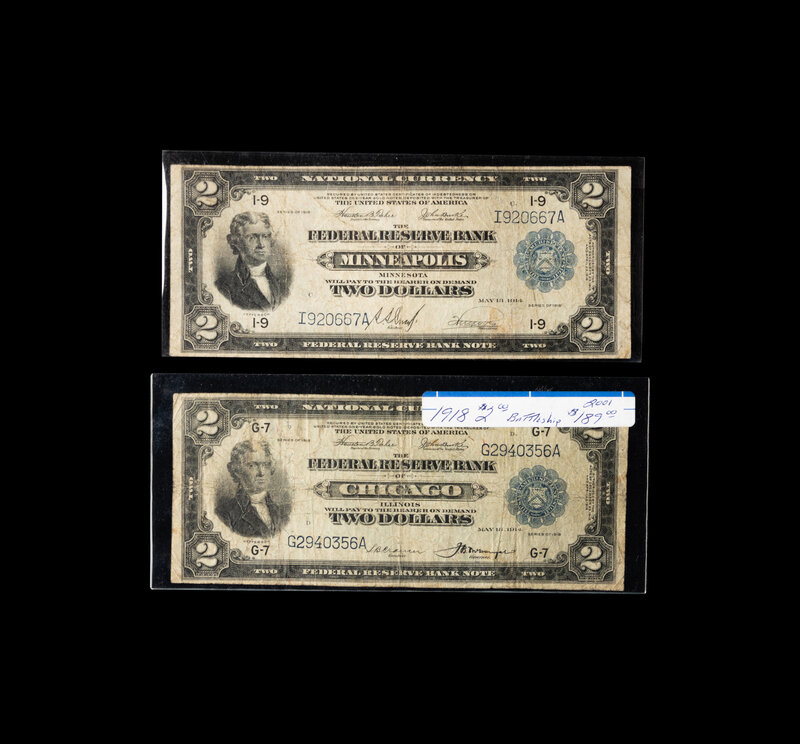 A Group of Two Series 1918 FRBN Battleship $2 Notes