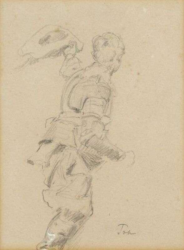 Signed bottom right 'John,' titled on label verso, pencil on paper