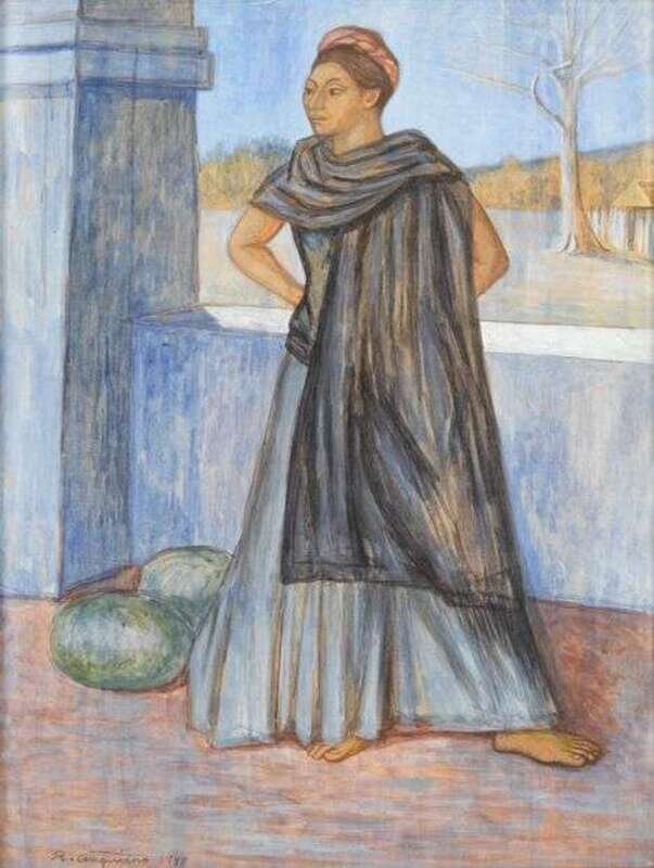 RAUL ANGUIANO (AMERICAN, 1915-2006) INDIGENA VESTIDA EN AZUL