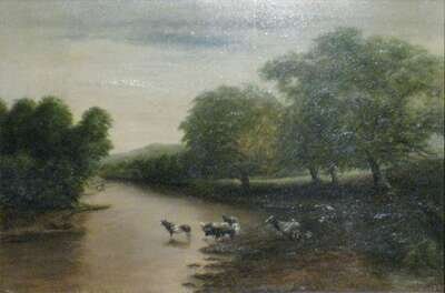 BRITISH SCHOOL (19TH C.) COWS WATERING