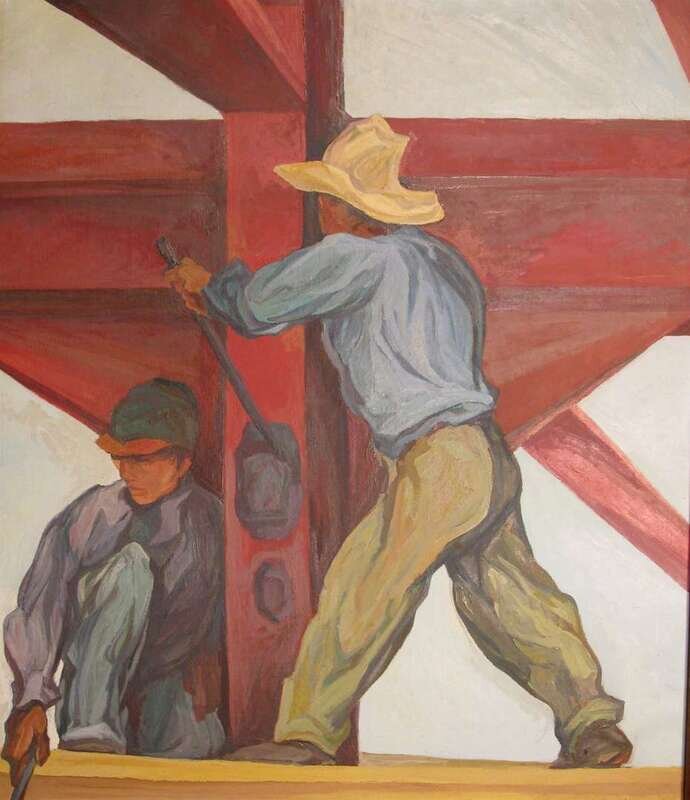 TWO PAINTINGSPABLO ESTEBAN O'HIGGINS (AMERICAN, 1904-1983) CONSTRUCTION WORKERS