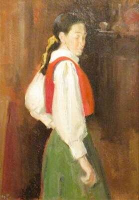 CHARLES APT (AMERICAN, B. 1933) "WOMAN IN RED VEST"