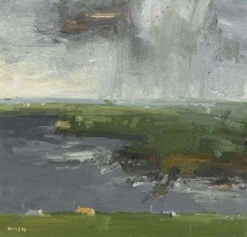 STUART SHILS (AMERICAN B. 1954) "BUNATRAHIR BAY FROM DOONFEENY, RAIN APPROACHING"