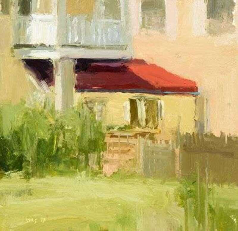 STUART SHILS (AMERICAN B. 1954) "GARDENS AND YARDS BEHIND HOUSES"