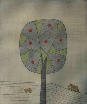 KEIKO MINAMI (JAPANESE B. 1911)TWO COLOR ETCHINGS BIRD AND FLOWERS and APPLE TREE