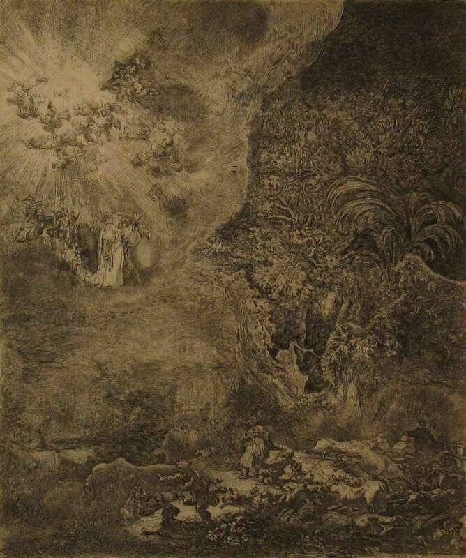 REMBRANDT VAN RIJN (DUTCH 1606-1669) "THE ANGEL APPEARING TO THE SHEPHERDS"