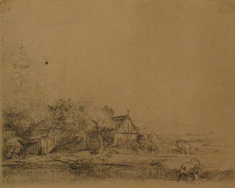 REMBRANDT VAN RIJN (DUTCH 1606-1669) "LANDSCAPE WITH A COW DRINKING"