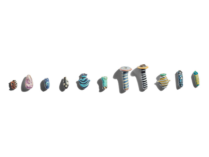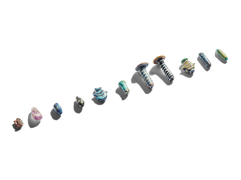 A Group of Eleven Glass Amulets and Ear Studs