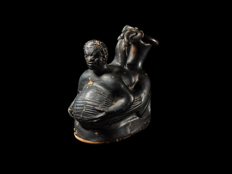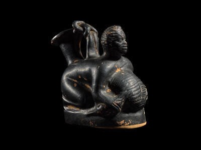 A Campanian Black-Glazed Askos in the Form of a Pygmy and Crane