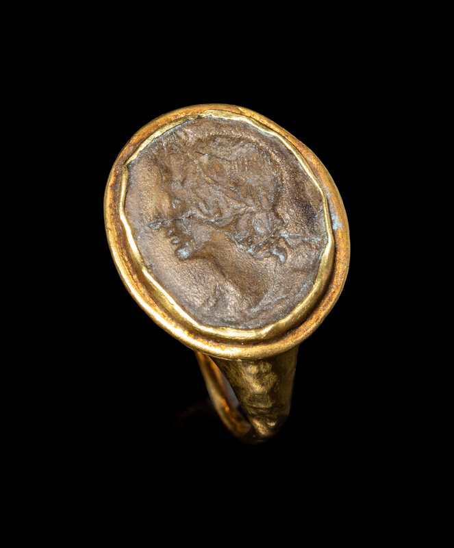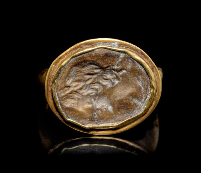 A Hellenistic Gold and Jasper Finger Ring with the Head of Alexander the Great