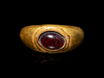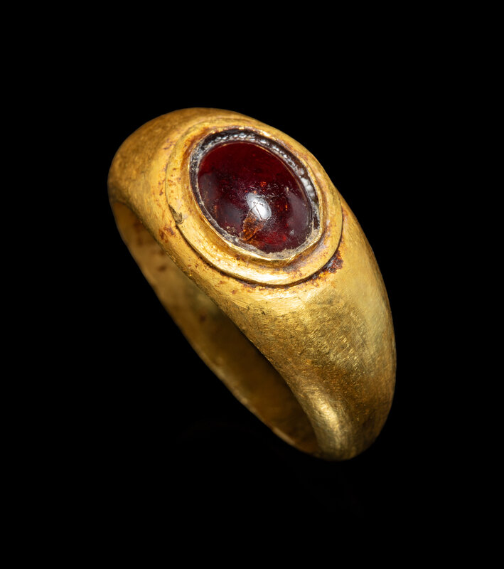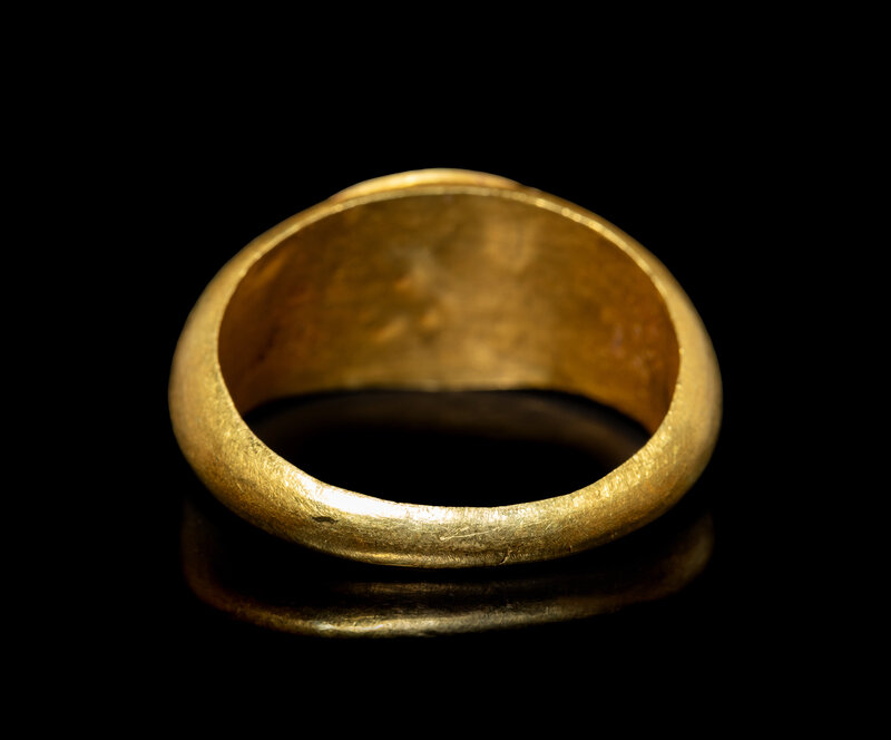 Ring size 7 1/2; Width 15/16 inch (2.38 cm); High karat gold; 2.19 dwt.