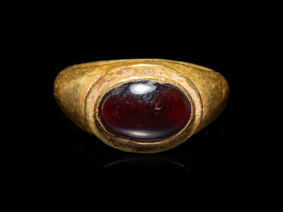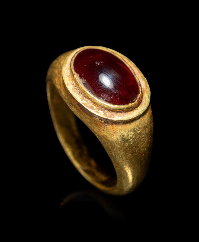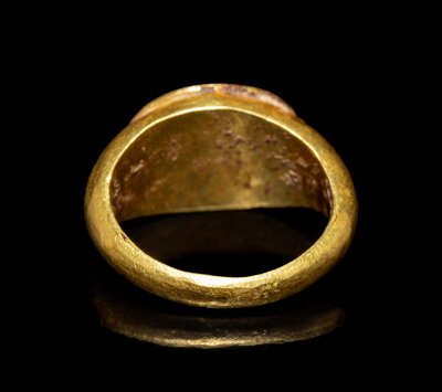 Ring size 1 3/4; Height 3/4 inch (1.9 cm); High karat gold; 1.43 dwt.