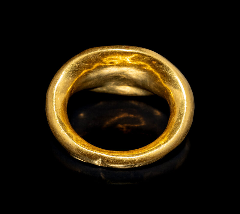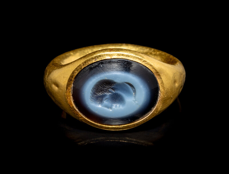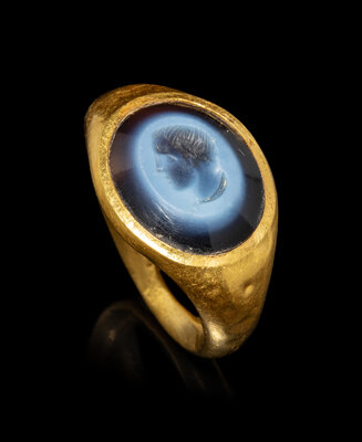 A Roman Gold and Nicolo Finger Ring with a Bust of a Youth