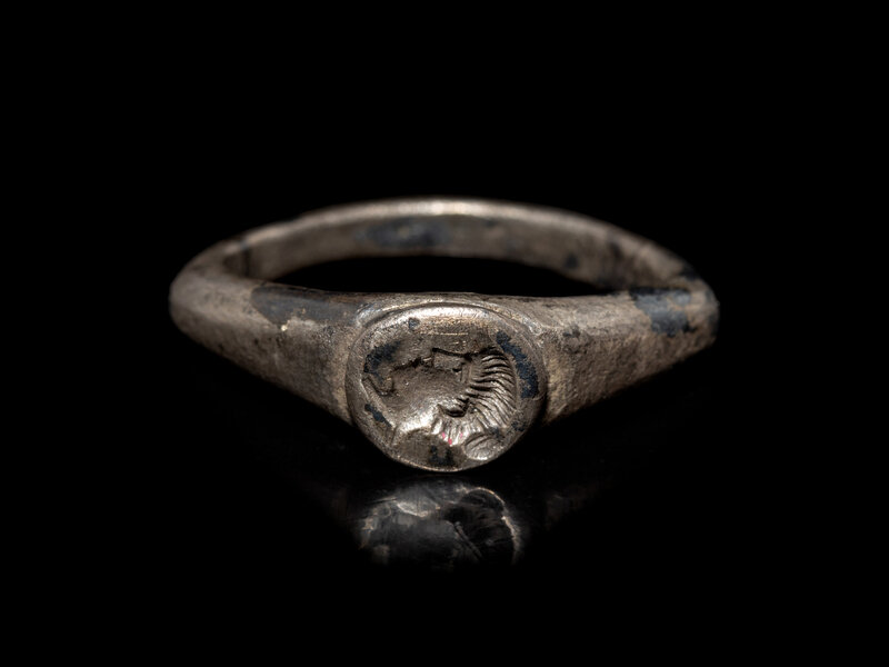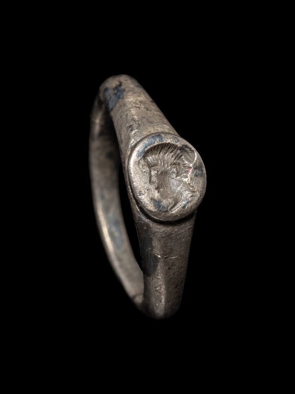 A Roman Silver Finger Ring with a Portrait Bust of a Woman
