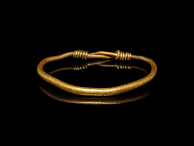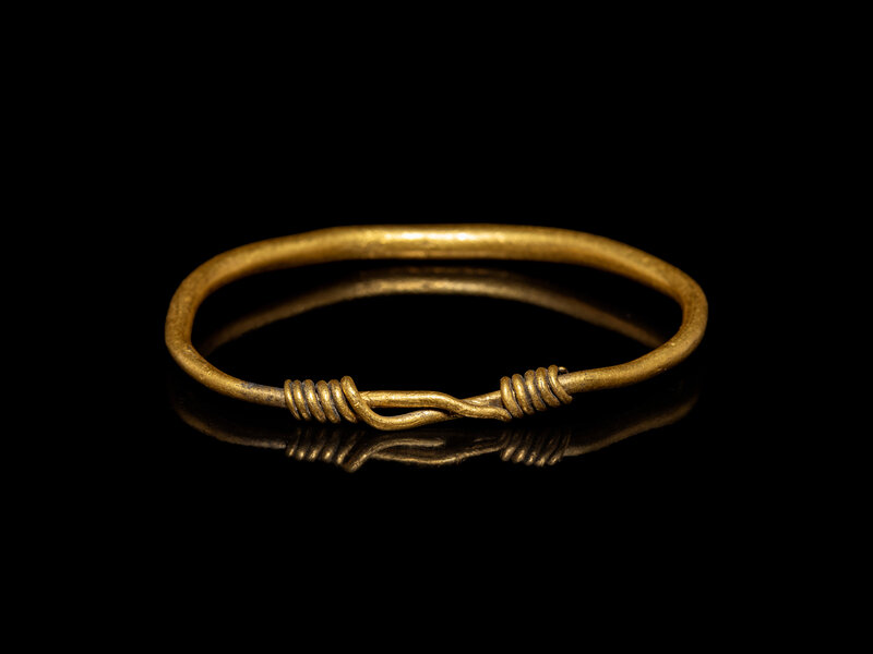 Width 2 1/2 inches (6.35 cm); High karat gold; 19.08 dwt.