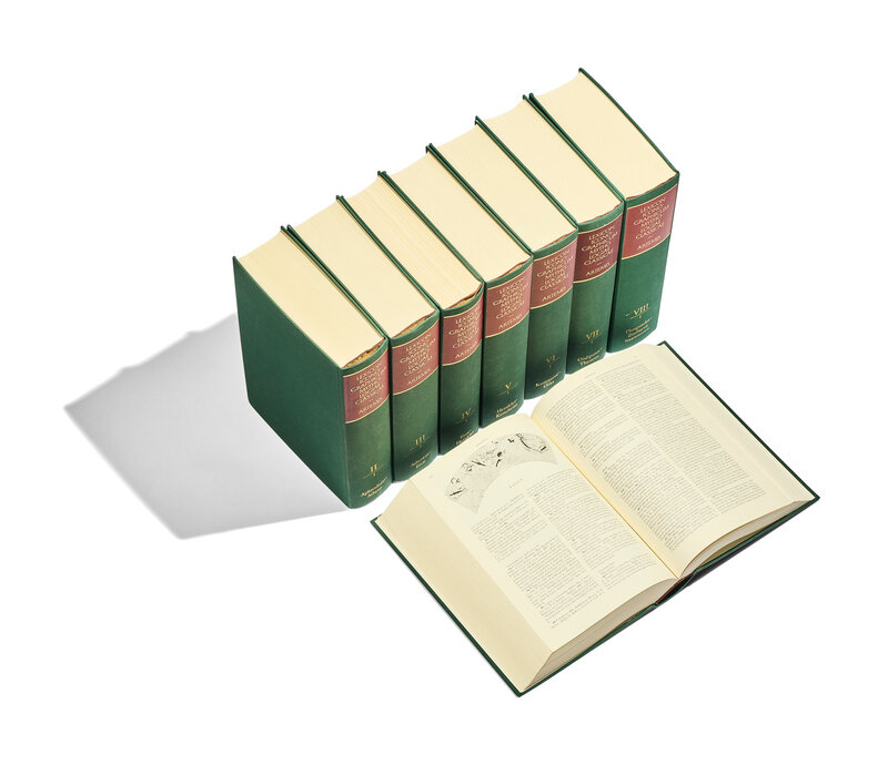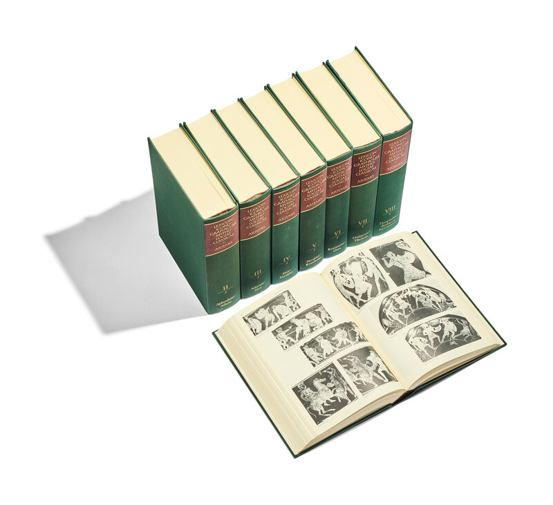 FIRST EDITION. The LIMC is a comprehensive multivolume encyclopedia that catalogs representations of classical mythology in ancient art, published between 1981 and 1997. This extensive resource, unparalleled in its field, provides detailed entries accompanied by indexed black-and-white illustrations. It was developed by an international collaboration involving scholars from nearly 40 countries, producing entries in English, German, French, or Italian. Esteemed as an indispensable and monumental tool for research, the LIMC is celebrated for its magnificent contribution to the study of classical arts and mythology.