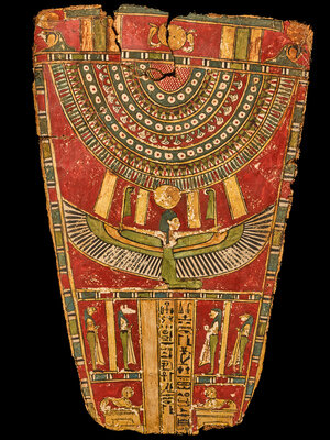 An Egyptian Painted Cartonnage Sarcophagus Fragment