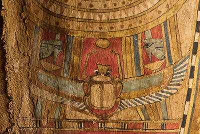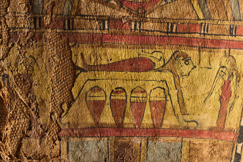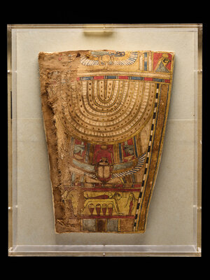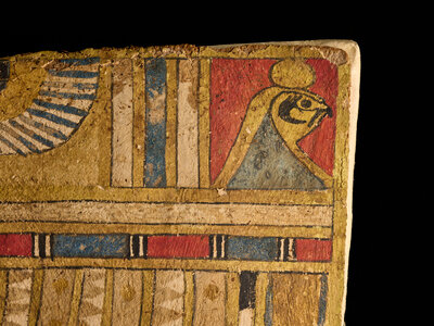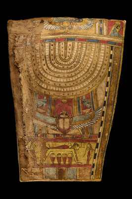 An Egyptian Painted Cartonnage Sarcophagus Fragment
