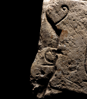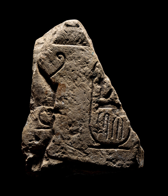 An Egyptian Limestone Relief Fragment with Cartouche of Ramesses II