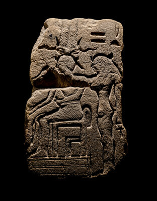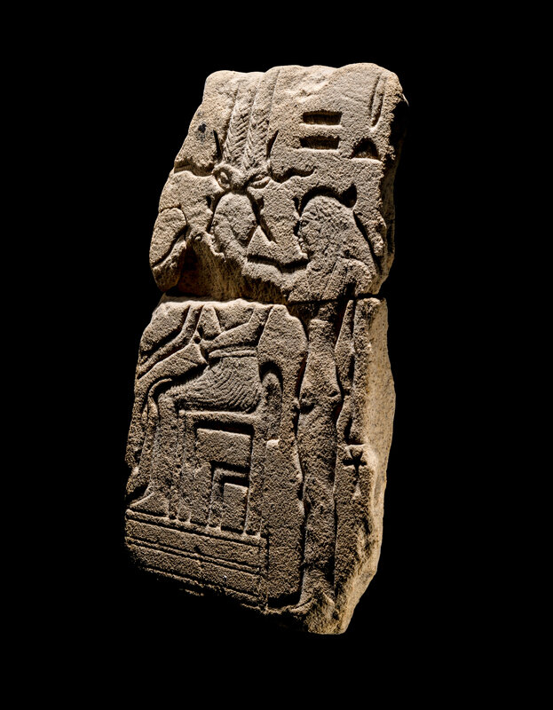 An Egyptian Sandstone Fragment with Osiris and Isis