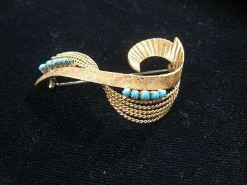 Contemporary spray form brooch accented by eleven petite turquoise beads.