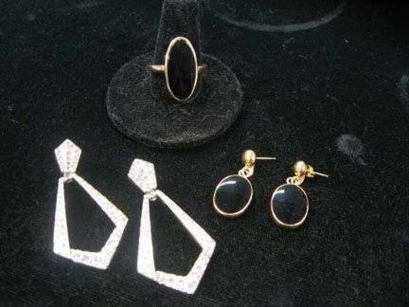 14 karat yellow gold onyx and diamond jewelry group 1980s