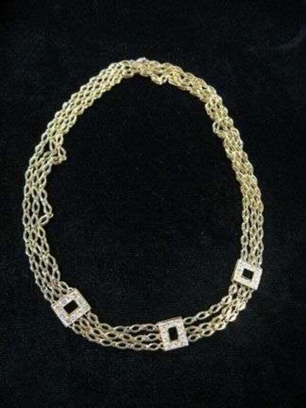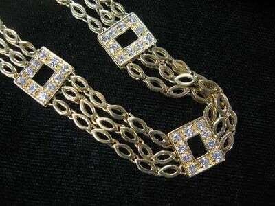 Tri-strand amrquis link necklace with three rectangular diamond set links.