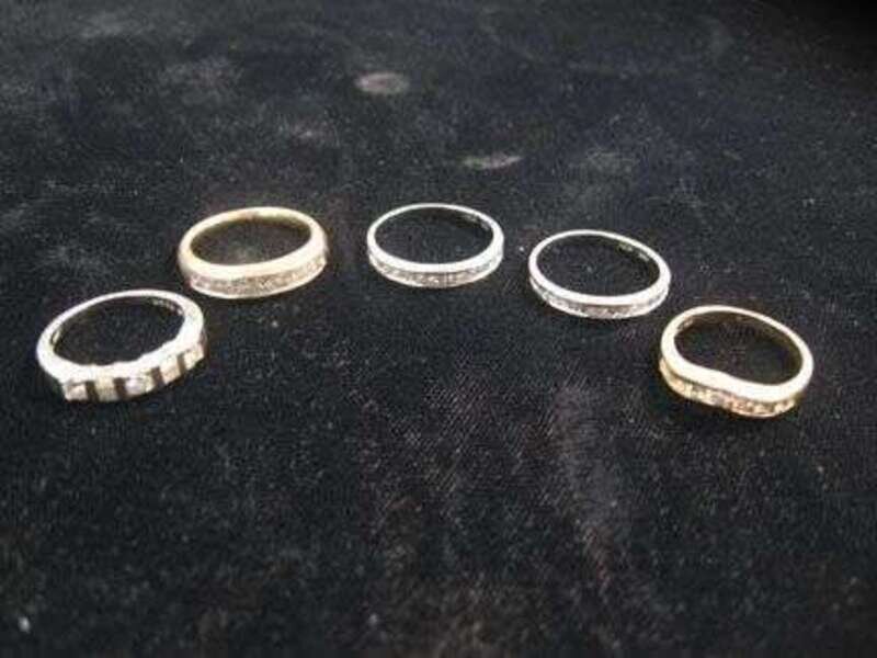 Group of five diamond band rings
