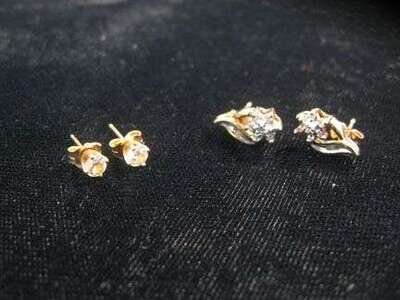 One pair of solitaire stud earrings, .15 carats each, the other pair are diamond cluster form.