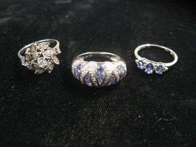 Two set with amethyst, one a traditional 1950s cluster ring.