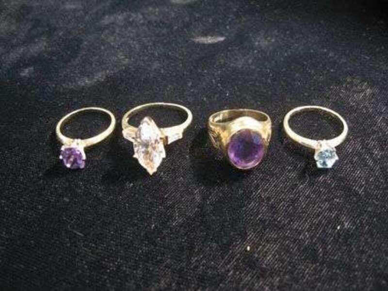Two amethyst rings and one topaz, one large marquis cut cubic zirconia.