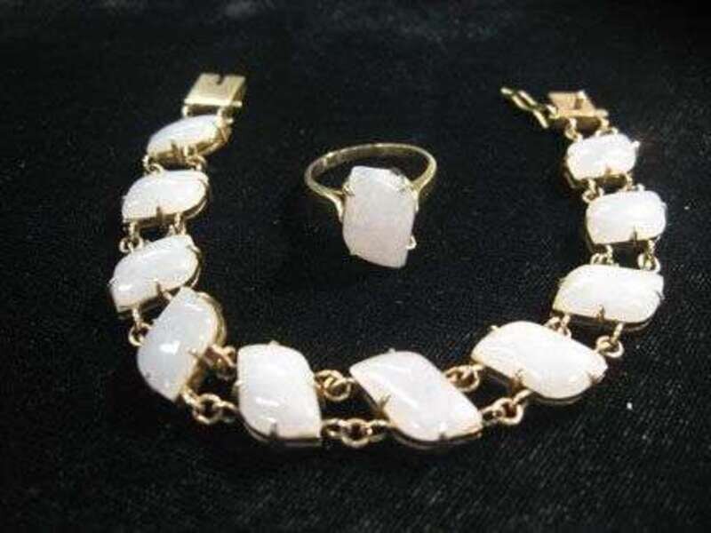 White onyx bracelet and ring in 14 karat yellow gold