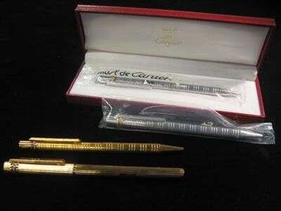 Group of four yellow gold pens, Cartier