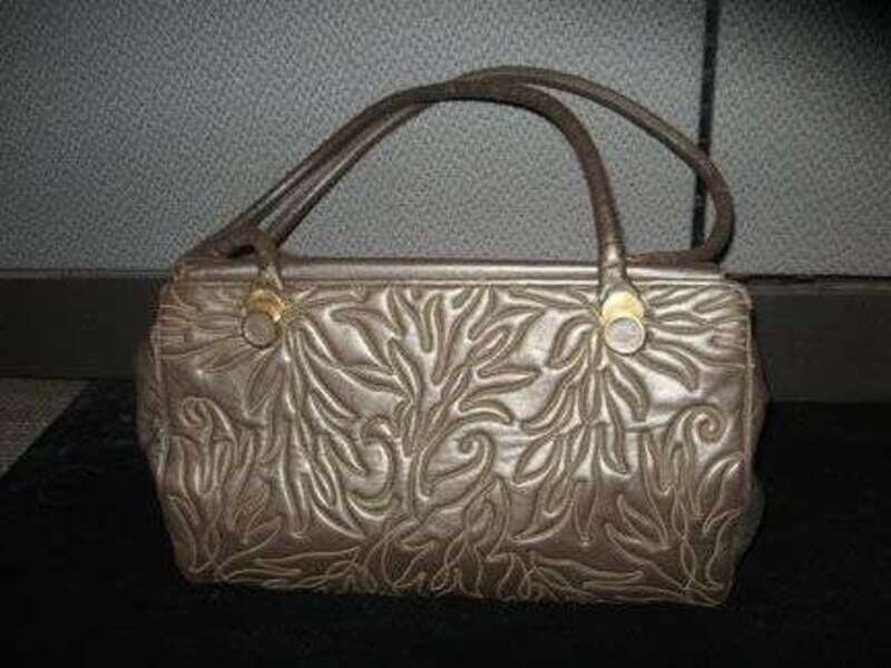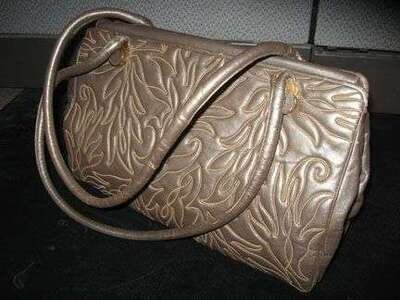 Lady's gray leather and embroidered handbag, Judith Leiber 1980s