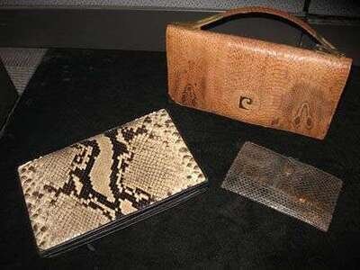 One by Pierre Cardin, accompanied by a gray snake skin wallet.