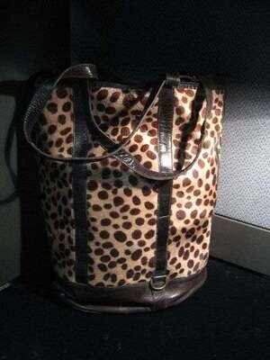 Leopard print cow hide and leather bucket tote