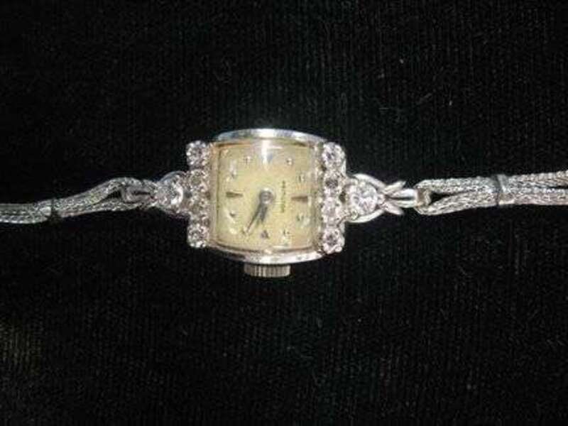 Lady's 14 karat white gold and diamond wristwatch, Hamilton