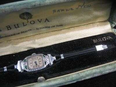 Lady's 14 karat white gold wristwatch, Bulova art deco