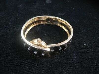 14 karat yellow gold and enamel cuff wristwatch, L'Etoile