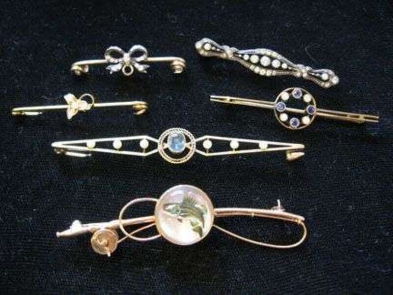 Six assorted "yellow gold" pins