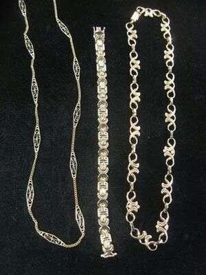 Two necklaces and a flexible bracelet.