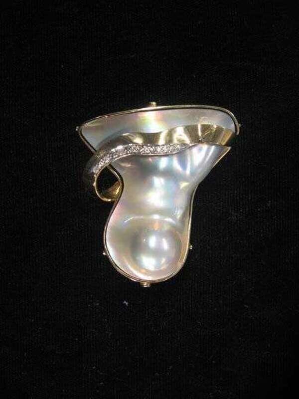14 karat yellow gold mother-of-pearl brooch