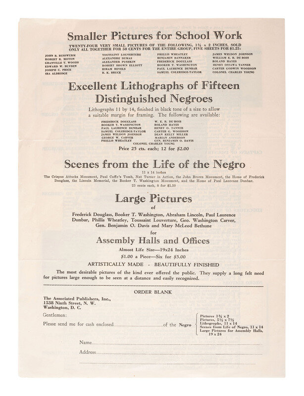 [AFRICAN AMERICANA.] "Pictures of Distinguished Negroes" advertising catalog issued by The Associated Publishers. Washington, D.C., n.d. [ca. 1940s].