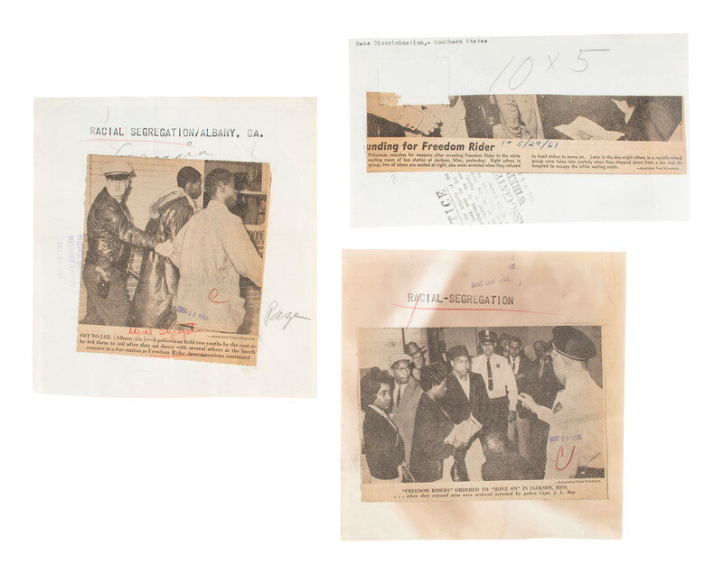[CIVIL RIGHTS]. A group of 3 press photographs documenting Freedom Riders in Jackson, MS, and Albany, GA. May-December 1961.
