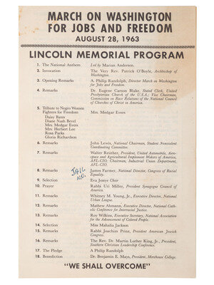[CIVIL RIGHTS]. March on Washington for Jobs and Freedom, August 28, 1963: Lincoln Memorial Program. [Washington, DC], 1963.