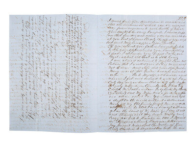 [TEXAS]. A letter from an enslaver detailing the value of enslaved persons and noting the recent discovery of gold. Hallettsville, TX, 28 April 1853. [With:] Additional letter to same recipient.