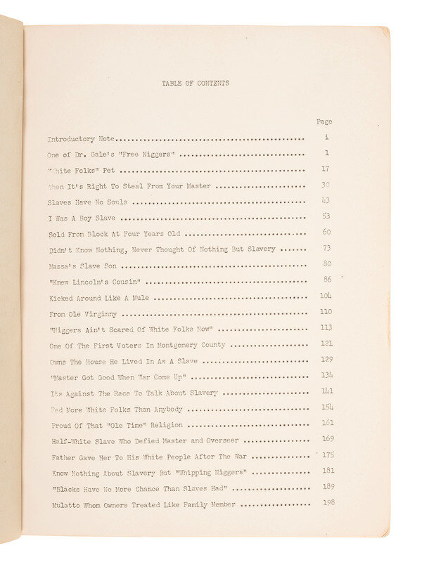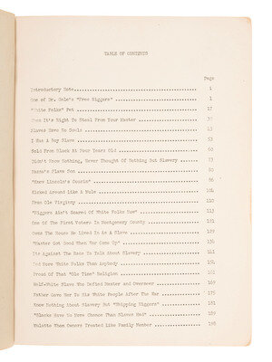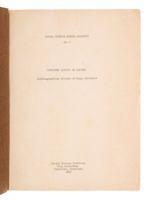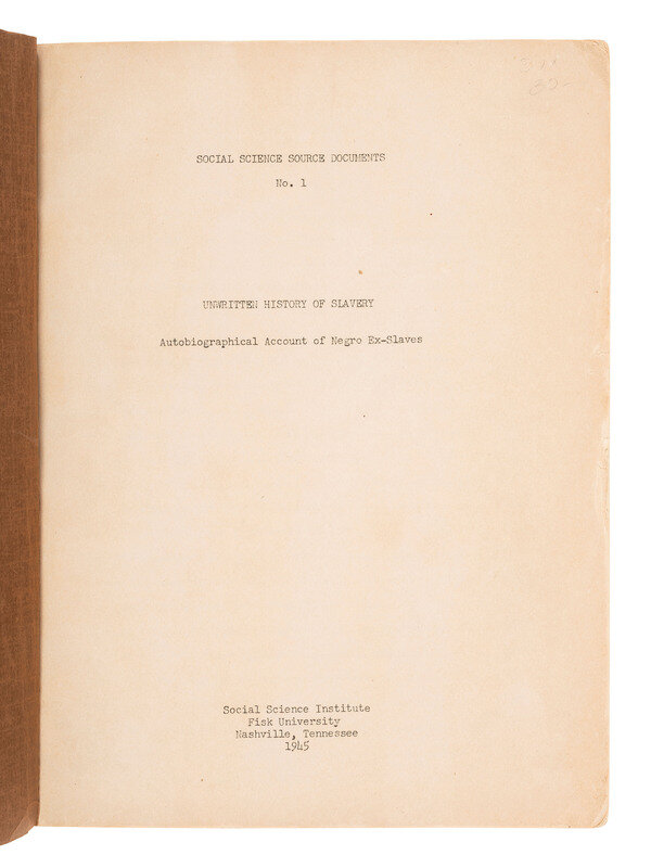 [ENSLAVEMENT & ABOLITION]. Unwritten History of Slavery. Autobiographical Account of Negro Ex-Slaves. Nashville, TN: Social Science Institute, Fisk University, 1945.