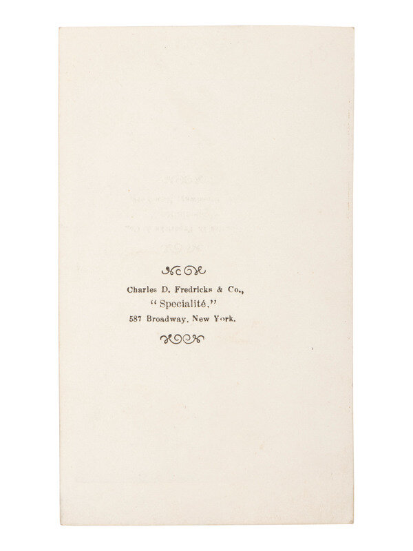 CDV on cardstock mount featuring an occupational studio view of two African American chimney sweeps holding brooms, rope, and other tools of their trade (very fine condition). Penciled title in lower margin and studio imprint of Fredricks & Co. on verso.